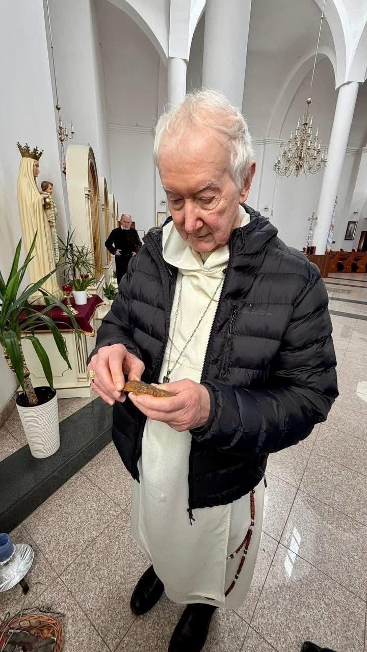 Після спільної молитви монахи показали кардиналу осколки від мін і снарядів, які зібрали на території монастиря: «Ці уламки є мовчазними свідками війни, яка не раз торкалася монастирського подвір’я, однак сама обитель дивом залишилася неушкодженою».