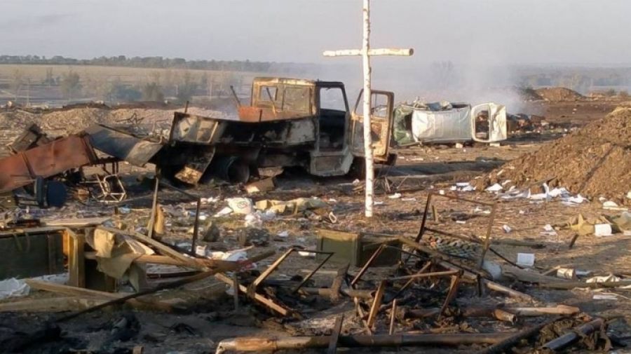 Уцілілий березовий хрест після обстрілу. Фото — Капеланство.info