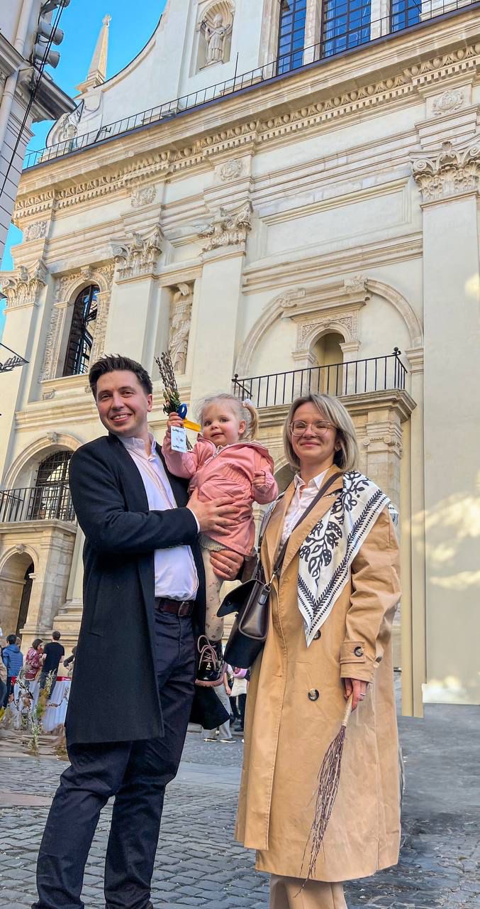Отець Андрій Кобилюх із дружиною Марією та донечкою Катериною біля Гарнізонного храму