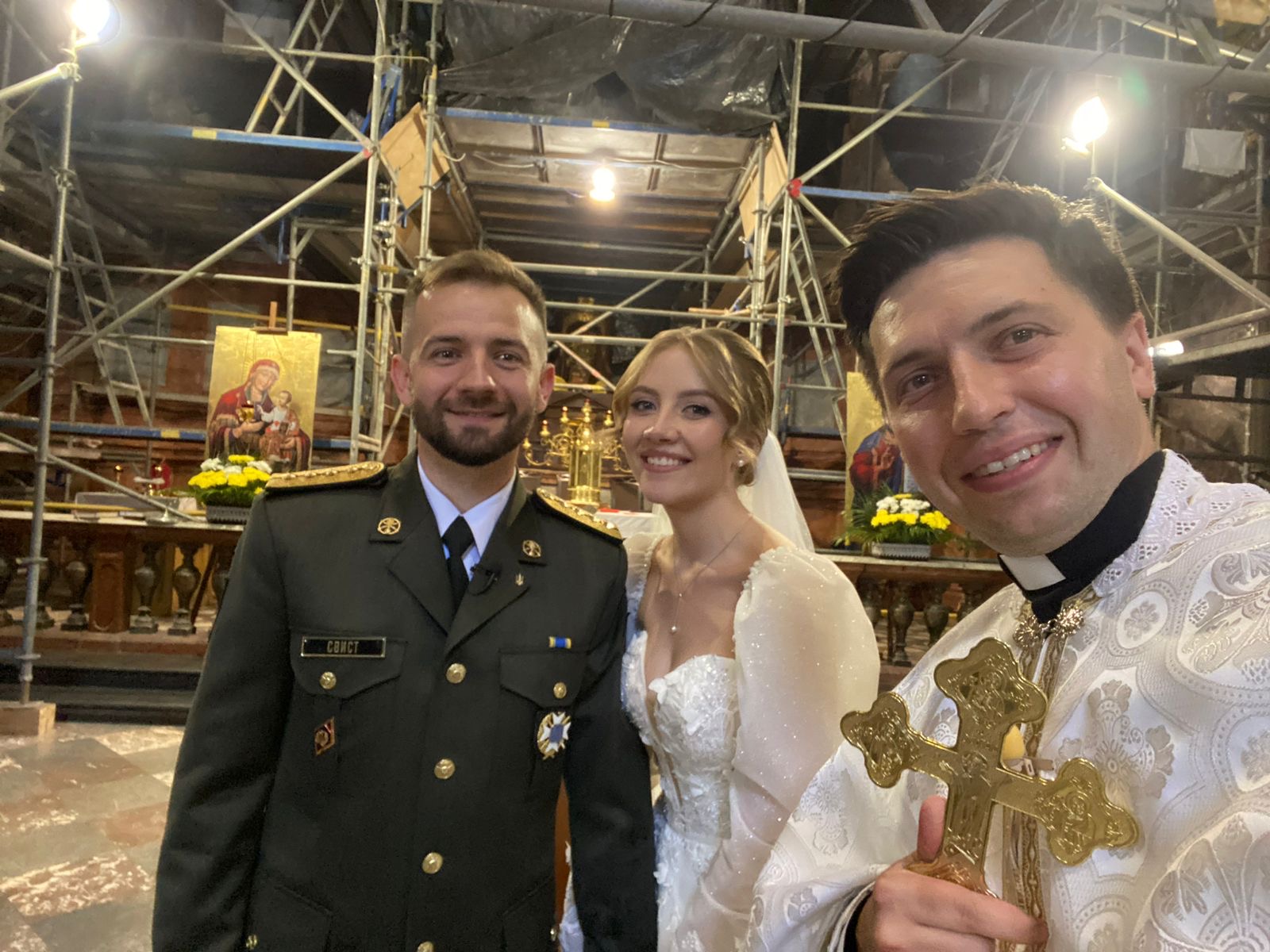Маю багато фотографій із тих радісних подій. Одною з пам’ятних є світлина, де уділяю Тайну Подружжя Герою України за життя. Уявіть собі: всі думали, що він загинув, а він вижив, і був нагороджений званням Героя України посмертно.