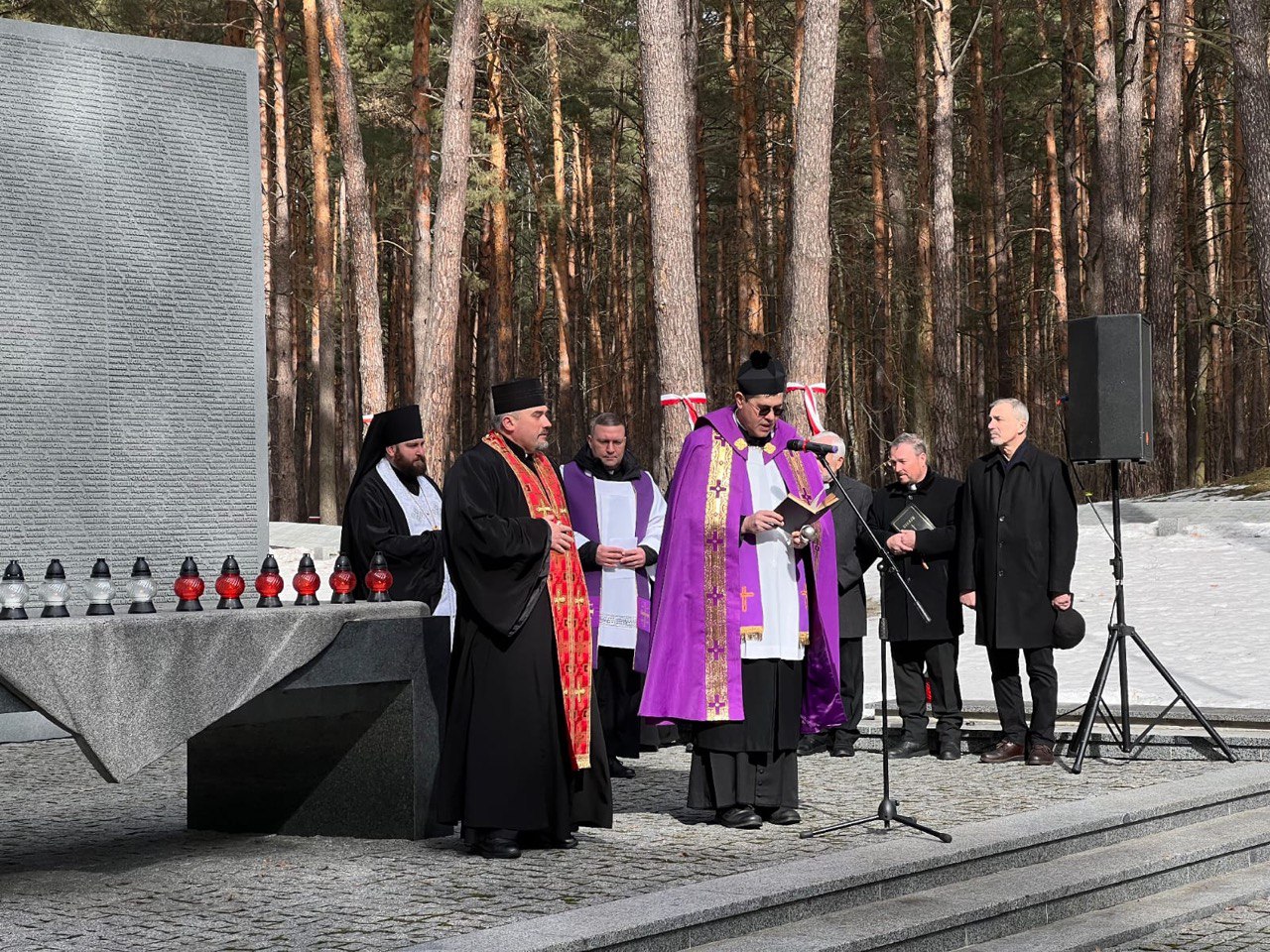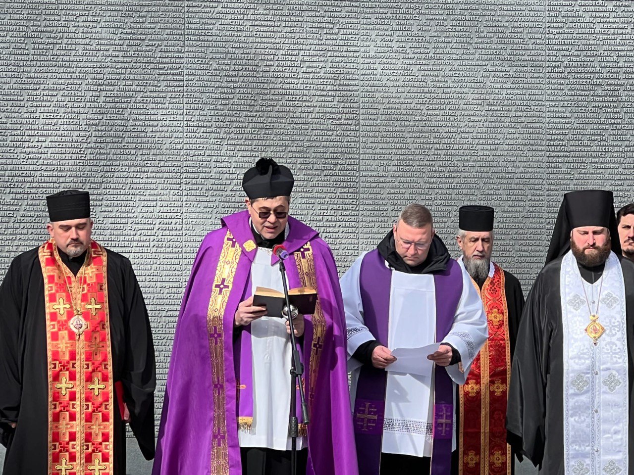 «Сьогодні з ініціативи Посольства Республіки Польща в Україні ми зібралися в меморіалі „Биківнянські могили“. Це місце, яке немає стін і окреслених меж, подібно як безмірною була жорстокість тоталітарного радянського режиму в ХХ столітті. Це місце тиші і молитви, пам’яті і пошани до всіх, хто тут поховані і на чиїх могилах ми стоїмо», — зазначив єпископ.