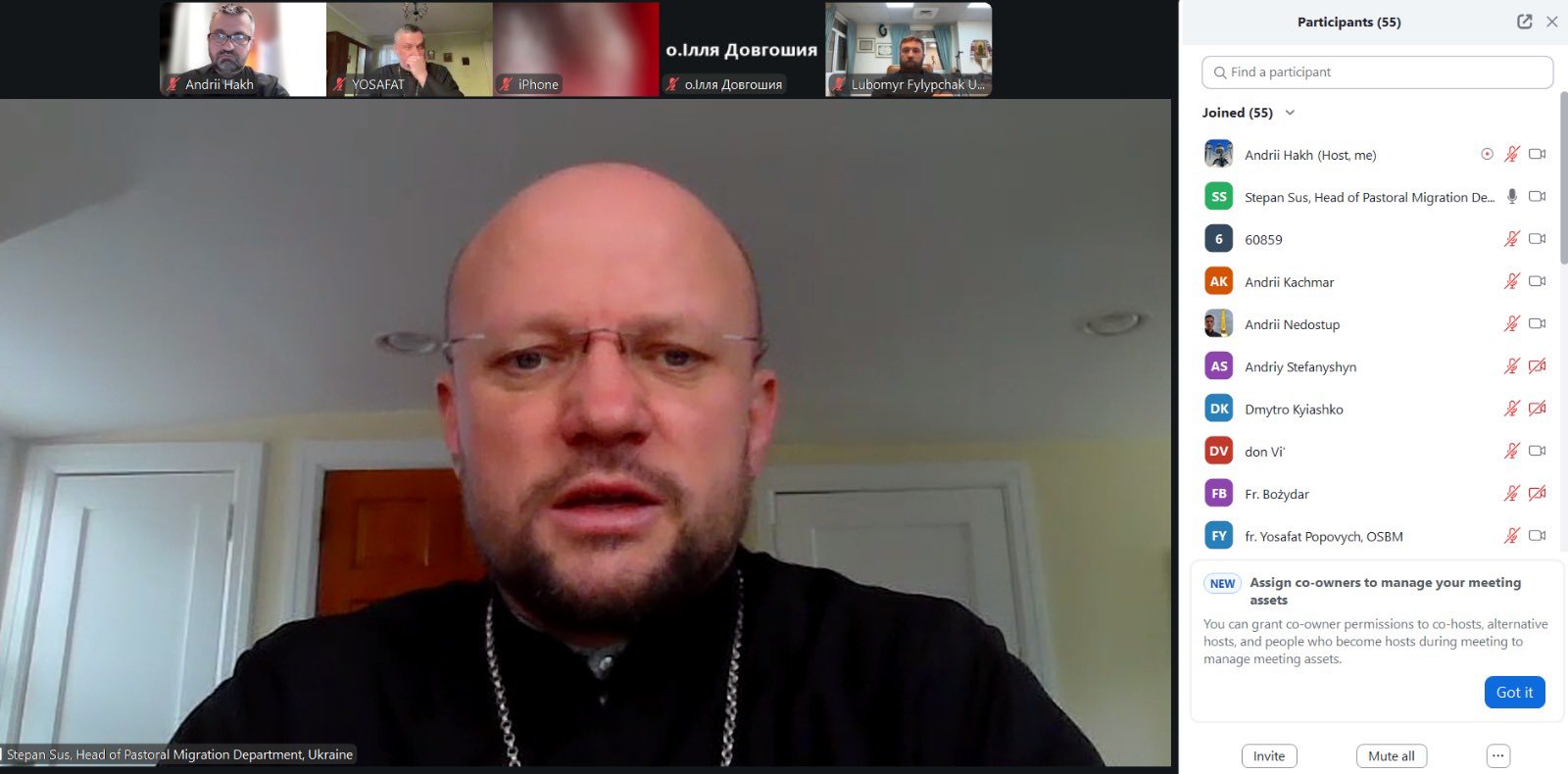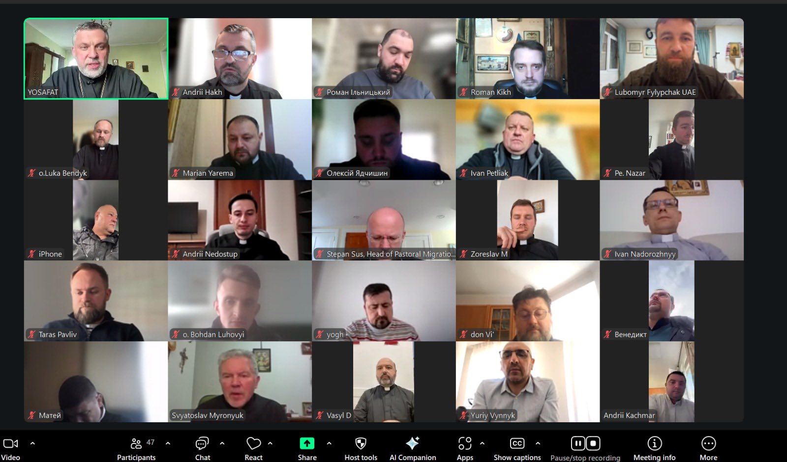 Команда Пасторально-міграційного відділу УГКЦ на чолі з владикою Степаном Сусом провела онлайн-зустріч священників, які служать у різних країнах світу, з головою Патріаршої комісії у справах євангелізації владикою Йосафатом Мощичем, єпархом Чернівецьким.