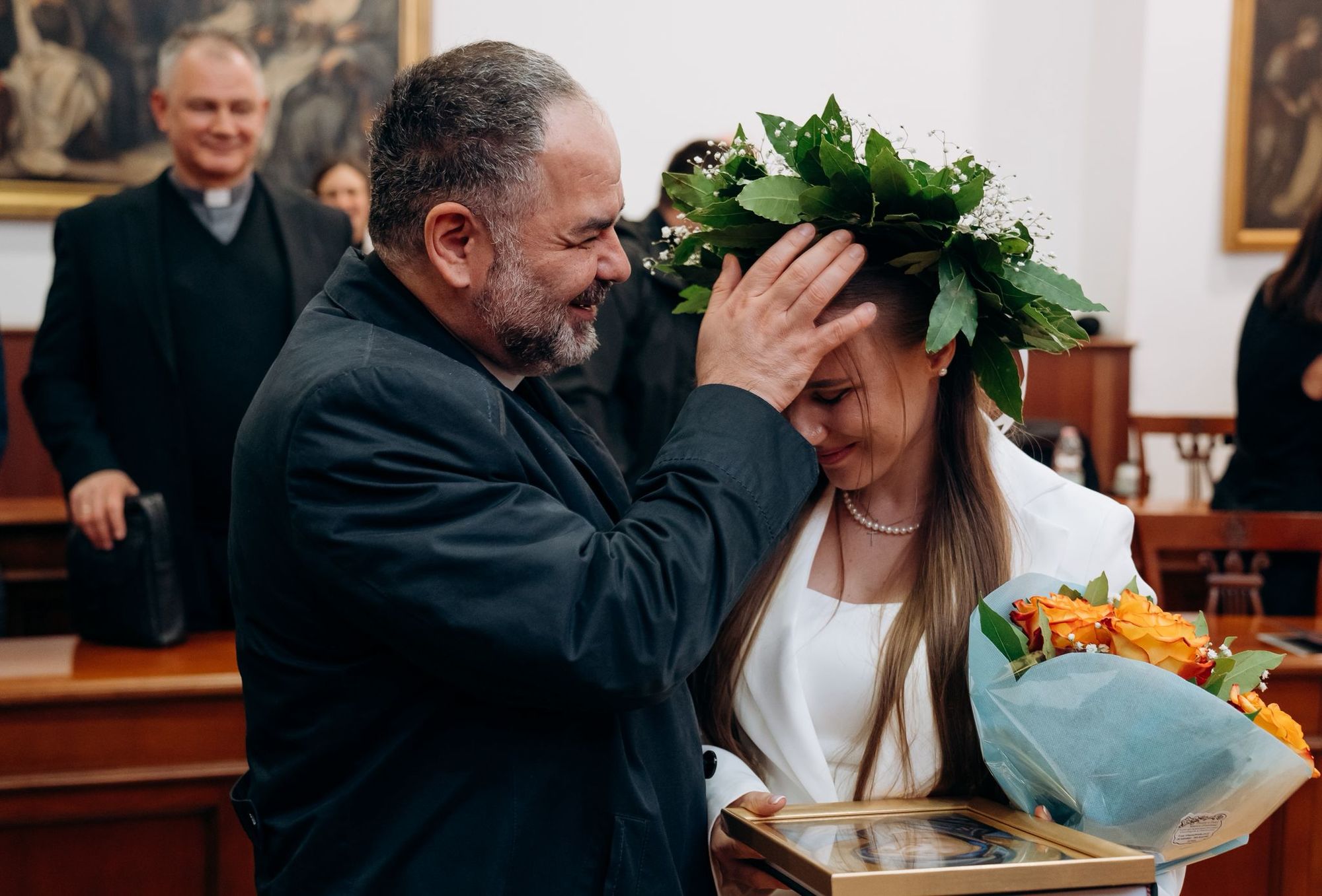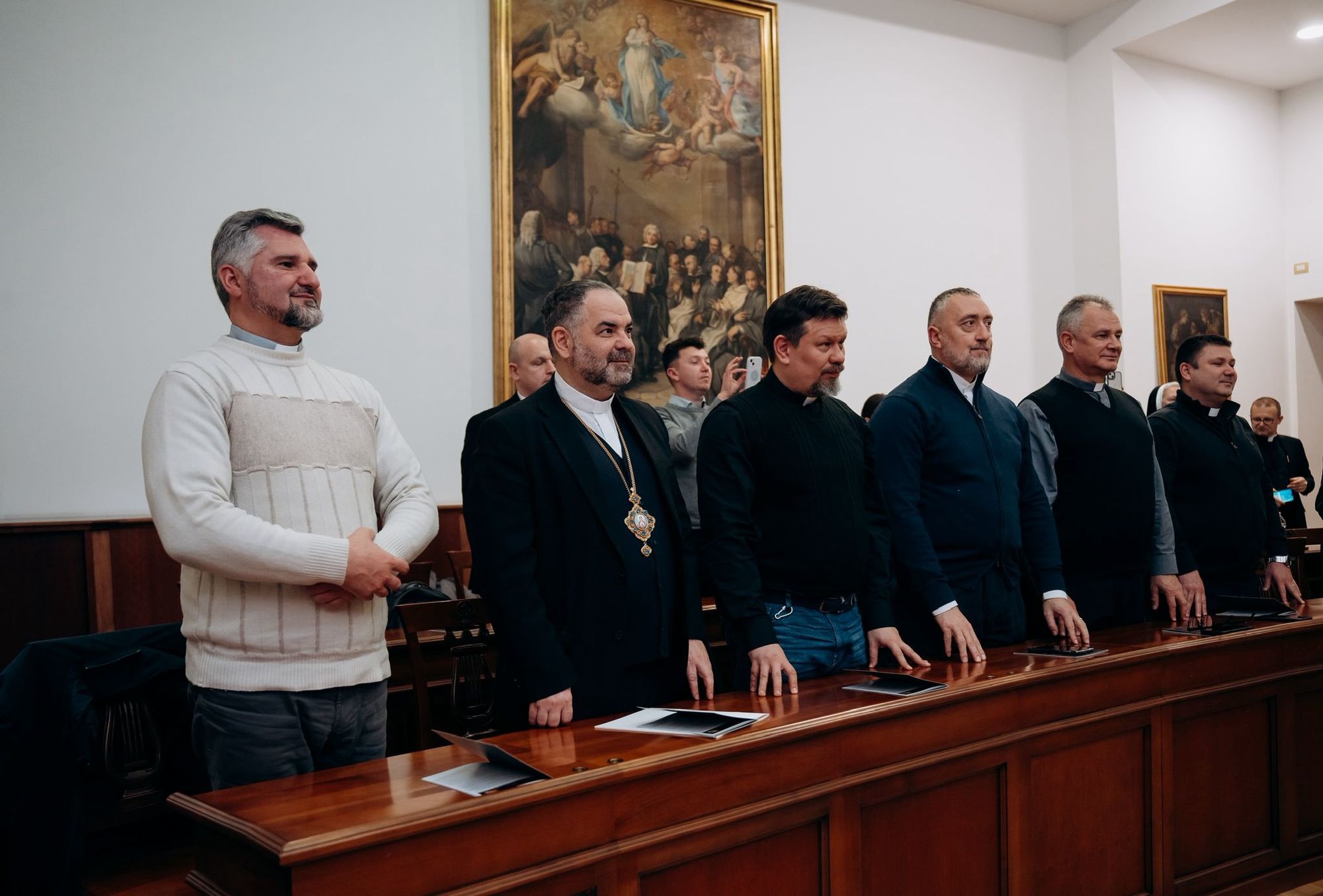 У публічному захисті дисертації взяли участь владика Григорій Комар, Апостольський адміністратор екзархату в Італії, разом із представниками духовенства екзархату, а також о. Андрій Солецький, керівник Секретаріату Глави УГКЦ у Римі.