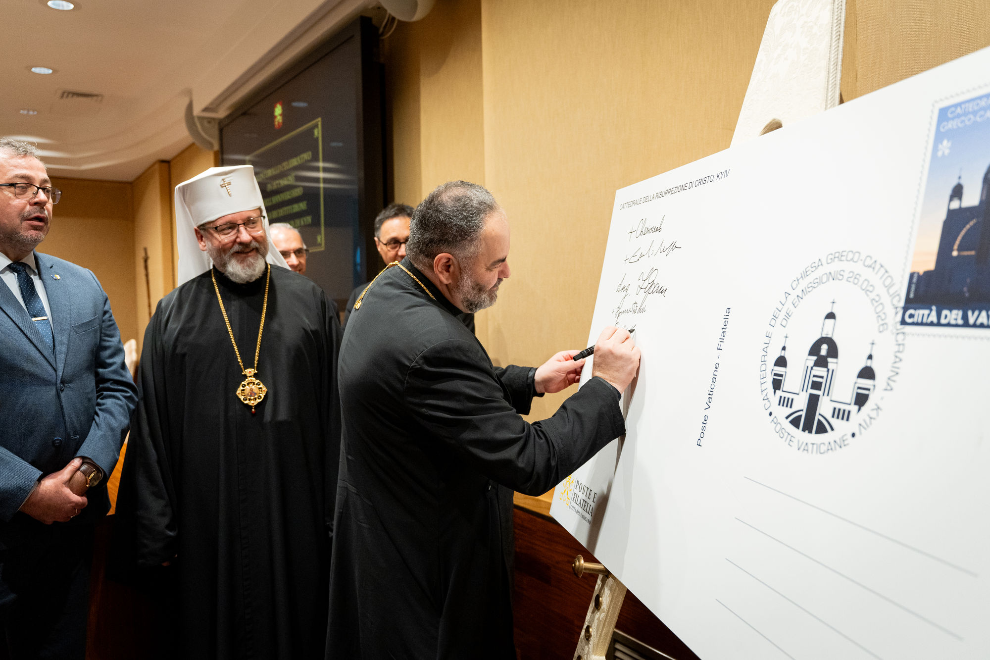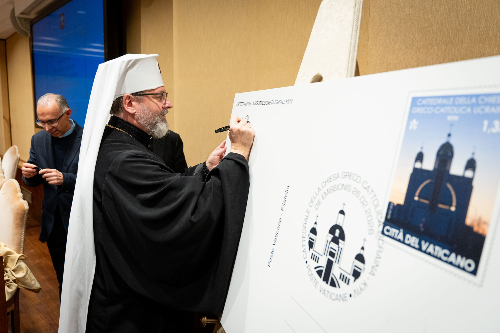 У презентації, окрім Глави УГКЦ, взяли участь архиєпископ Еміліо Наппа, Генеральний Секретар Губернаторства Держави-Міста Ватикан, отець Феліче Бруно, Директор ватиканської пошти, а також владика Григорій Комар, Апостольський адміністратор Екзархату в Італії, владика Іриней Білик, єпископ емерит та канонік Папської Базиліки Санта Марія Маджоре.