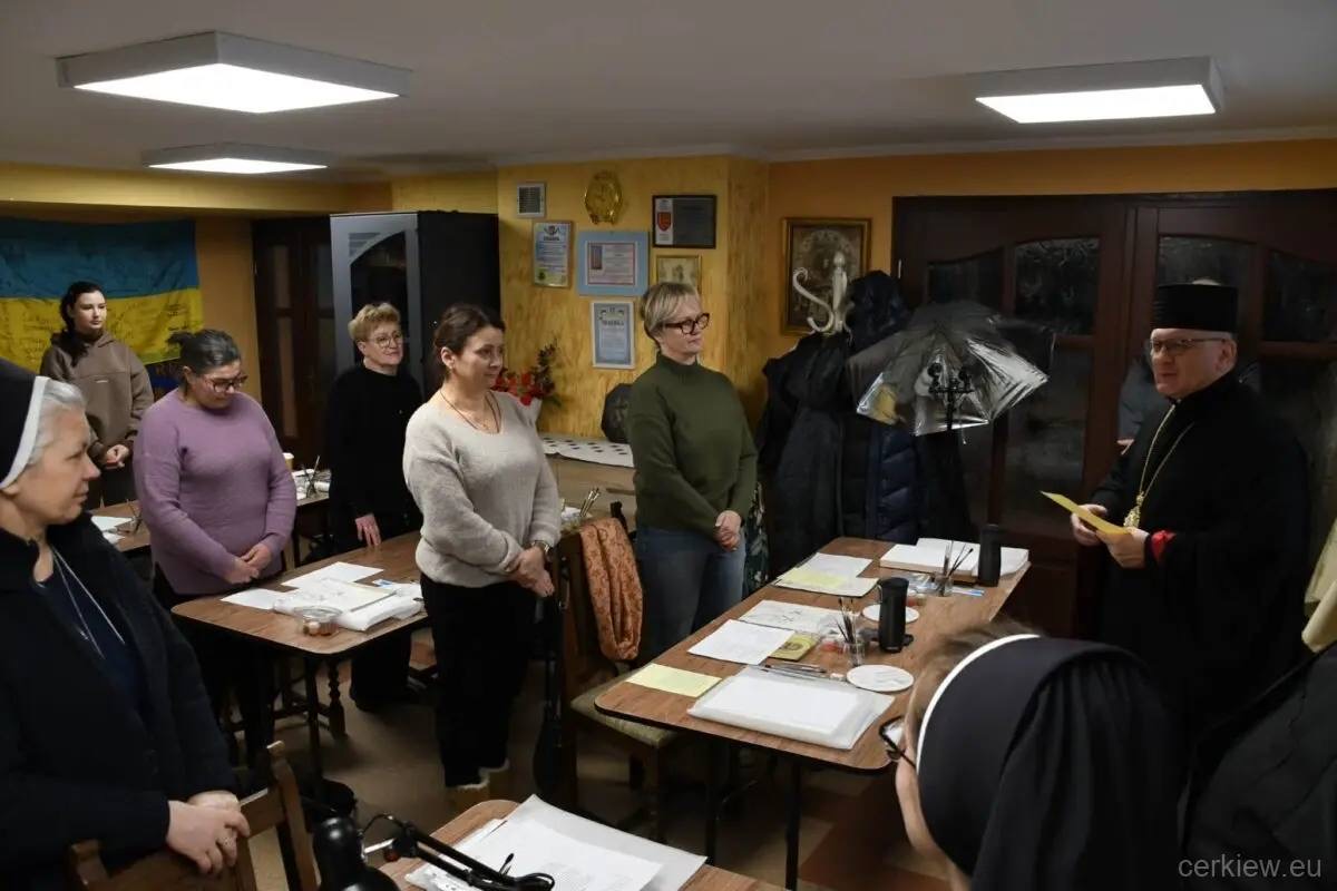 Курс розпочався спільною молитвою за участю владики Аркадія Трохановського і пароха о. Івана Галушки. Під час зустрічі о. Іван попросив про молитву за здоров’я першого організатора курсу іконопису п. Івана Курія. Відтак владика благословив учасників і подякував с. Вікторії Карпів зі Згромадження Непорочної Діви Марії за проведення курсу.
